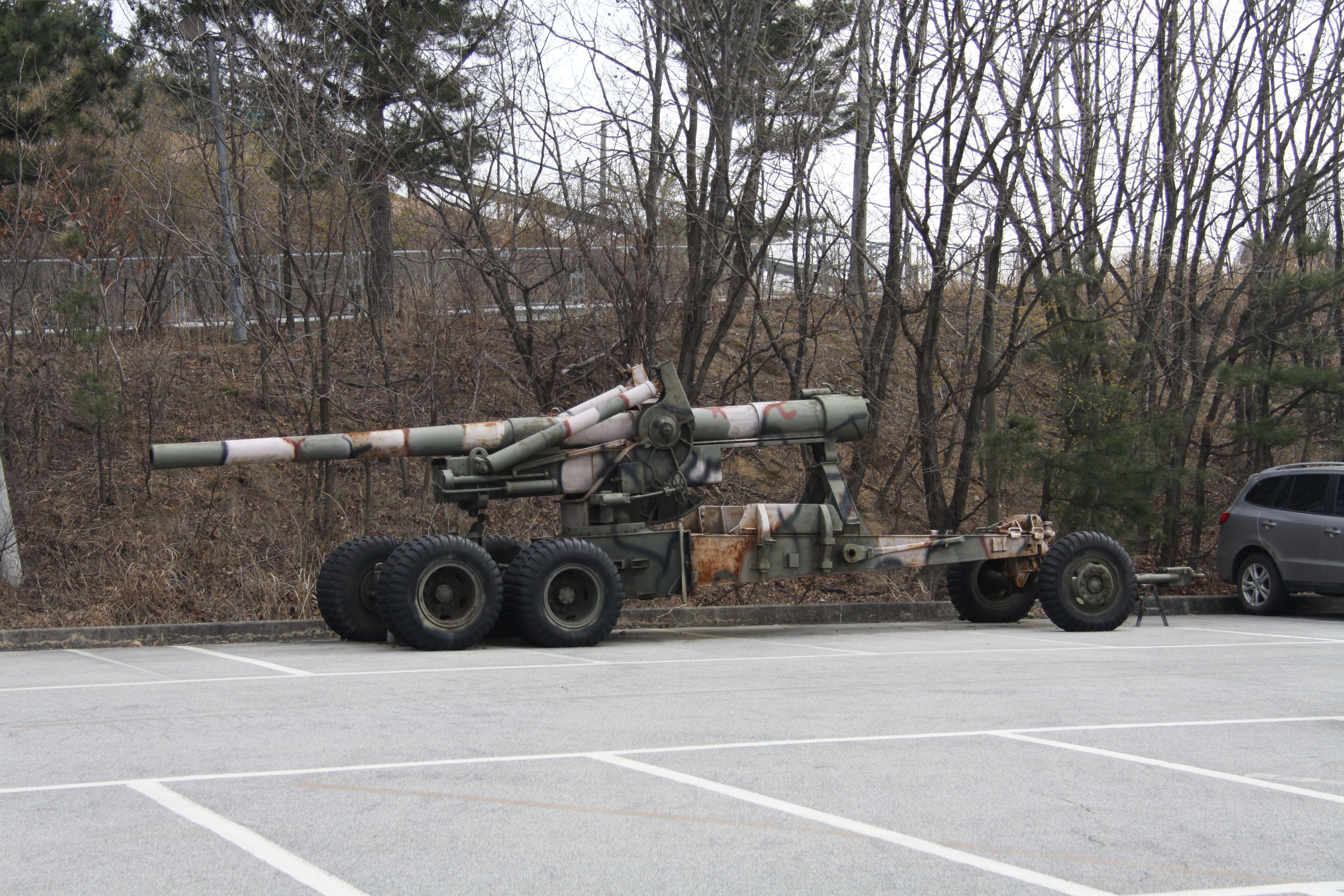 После того как формальности были улажены, мы сели в атобус и поехали. Примерно за 2 километра до смотровой площадки проезжали через КПП — южно-корейский военный в полной экипировке зашёл в атобус и пересчитал по головам.